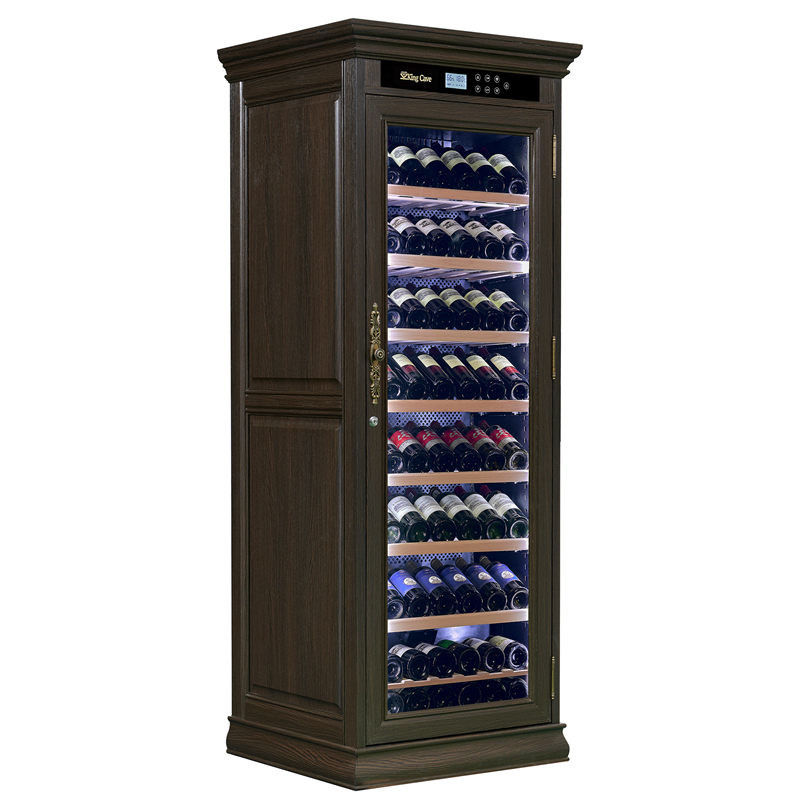 خزانة تبريد النبيذ الخشب البني,خزانة عالية قابلة للإغلاق لتبريد النبيذ,جهاز التحكم باللمس خزانة تبريد النبيذ